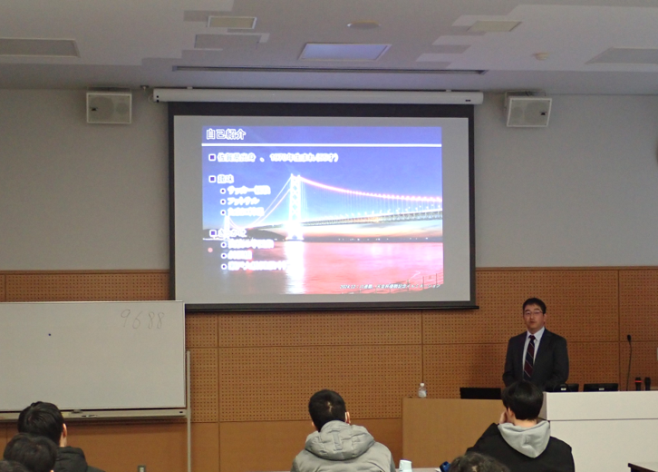 大学院講義「非破壊評価特論」において,本四高速の溝上氏による”長大橋の維持管理”についての特別講演(2025.12.23)を行いました. 大学院講義「非破壊評価特論」において,本四高速の溝上様による特別講演(2025.12.23)を行いました.長大橋の保全や非破壊検査の適用,最近の取り組みについてご講演頂きました. 本州四国連絡橋の維持管理 ~長大橋管理における非破壊検査技術~ 本州四国連絡高速道路 溝上 善昭 氏 2025.12.23